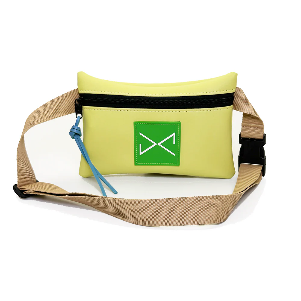 Riñonera elaborada en piel vegana impermeable con cremallera, y correa de polyester ajustable.